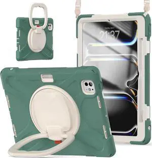 JAENFONG Case for iPad Pro 11 Inch M4 2024 5th Generation (Model: A2836, A2837, A3006) with Built-in Screen Protector, Pencil Holder, 360° Rotating Handle Grip, Adjustable Shoulder Strap, Green