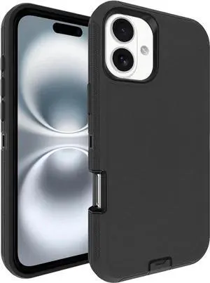 for iPhone 17 Case 3-Layer 16ft Drop Protection with Dustproof Port Cover Full-Body Non-Slip Shockproof Rugged Heavy Duty Phone Case Black
