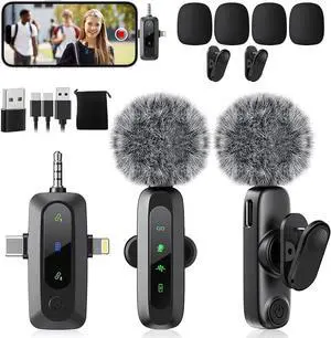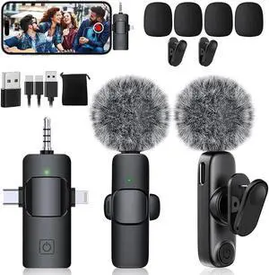 2 Pack mini Updated Model Wireless Professional Lavalier Microphone for Android, iPhone, iPad, Laptop, Interview, Live Streams, Video Recording, Podcast, Vlog, YouTube, Instagram.- Model #: B3B143452735824534ZZ