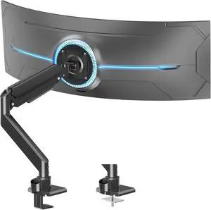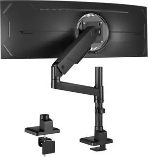 Heavy Duty Single Monitor Mount for Max 49 inch, Hold 4.4 to 44 lbs Ultrawide Screens, Premium Monitor Arm for Samsung Odyssey G9 and More, Adjustable Gas Spring Desk Stand, VESA Mount