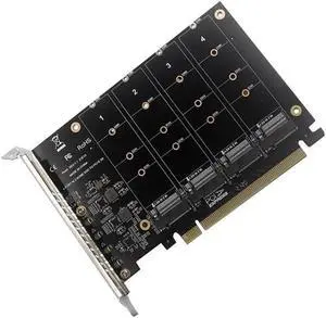 Vszerda M.2 PCIE Adapter Card, 4 Port M.2 NVMe SSD to PCIE X16 M Key Hard Drive Converter Reader Expansion Card PC Internal Expansion Card Pcie Nvme Adapter (ph44)