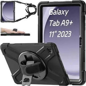 for Galaxy Tab A9+ Plus Case 11 2023 (SM-X210/X216/X218) Shockproof Galaxy Tab A9 Plus Case with Rotating Stand and Hand/Shoulder Strap Black