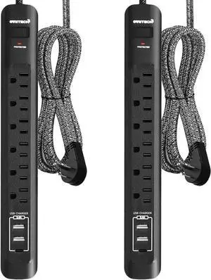 2 Pack Power Strip Surge Protector - 10 Ft Extension Cord with 6 Outlets with 3USB Ports1 USB C Port1875W/15A, Flat Plug, Wall Mount Desk Charging Station for Home Office