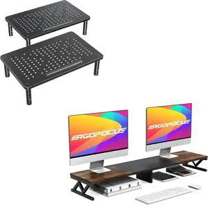 ELIVED 2 Pack Monitor Stand Riser+Large Wood Monitor Riser for 2 Monitors