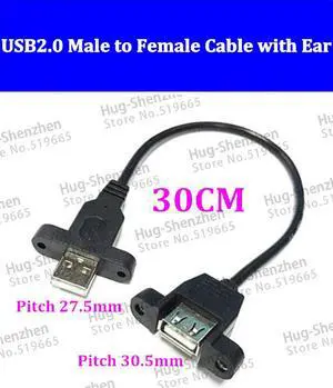30CM 0.3M USB2.0 Male to Female Screw Panel Mount Extension Date Cable with ear --2pcs/lot