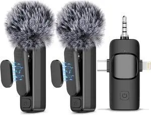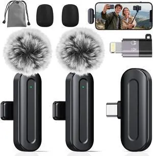 Mini Microphone for iPhone 15/16/Android/ipad,Wireless Lavalier Mic with Noise Cancelling, USB-C Mini Lapel Lav Mic 2 Pack for Vlog YouTube TikTok