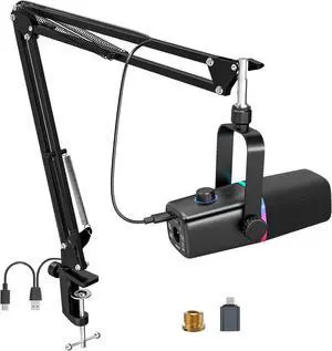 ZealSound XLR/USB Dynamic Microphone for Gaming Podcast,Mic for iPhone Phone PC Computer Gaming Streaming Microphone with RGB Light,Mute Button,Mic Gain,Headphones Jack,Boom Arm Stand,Singing YouTube