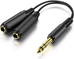 ICESPRING 1/4" 6.35mm Stereo Plug / Male to Dual 1/4" 6.35mm Jack /Female Splitter Adapter Cable Converter 0.6 feet
