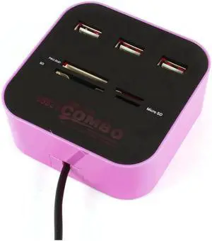 Global Bargains 3 Port Powered USB 2.0 Hub Expander + Multi Memory Card Reader Pink