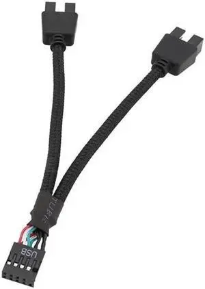 Main board USB2.0 9-pin to dual 9-pin split 2-9PIN to dual 9USB shielded wire mesh black(15cm)
