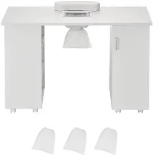 VEVOR Manicure Table, Nail Table Station with Electric Dust Collector, Moveable Nail Tech Desk with 8 Wheels (4 Lockable), 3 Dust Bag & Wrist Rest, MDF Nail Art Workstation for Spa Beauty Salon, White