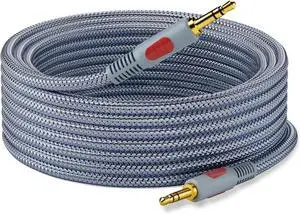 3.5mm Aux Audio Cable 50 ft - Nylon Braid Male to Male 1/8 Shielded AUX Headphone Extension Cord for Outdoor Auxillary Stereo