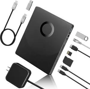 8 in 1 External Blueray/DVD Drive for PC, External CD/DVD Drive for Laptop Support 100G Disc 3D, Bluray Burner with HDMI/LAN/USB 3.0/Type-C/SD/TF Port, Blu-ray Player for Windows XP/7/8/10/11 MacOS