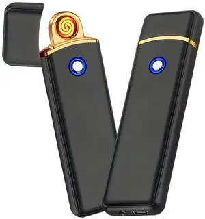 Electronic USB Rechargeable Lighter - Smart, Cool, Portable Dual Sided Ignition Windproof Flameless Plasma Lighter for Indoor Outdoor Use (Black)