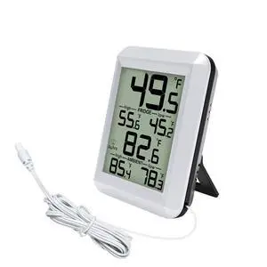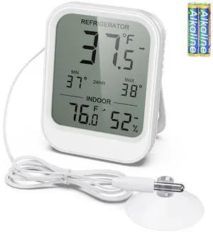 Refrigerator Thermometer, Waterproof Digital Fridge Freezer Room Thermometer Wired with Large LCD Display and Max/Min Record Function
