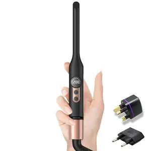Mini Flat Iron Hair Straightener 1/3 Inch Pencil Flat Iron for Women Portable Travel Straightener and Curler 2 in 1 for Short Hair Beard and Pixie Cut with Adjustable Temp (Rose Gold)