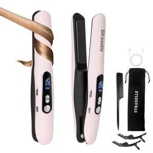 Pro Hair Straightener and Curler 2 in 1, Twist Flat Iron Hair Straightener for Women, Dual Voltage Round Pink Flat Iron with Anti-Scalding Silicone Mat, 11 Adjustable Temp for All Hair Types