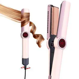 Pro Flat Iron, 2-in-1 Hair Straightener & Curler, Professional Titanium Hair Straightening Curling Wand, Fast Heating, Salon-Grade Effect, 122-500F Adjustable Temp, LED Display, UL Certified