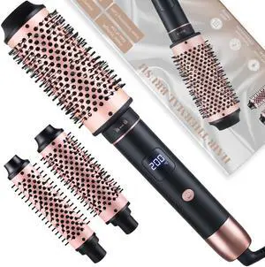 Instant Heat Curling Iron Brush, 1 1/4-Inch Barrel Curling Brush for Short Hair, 30-Second Heat-Up with 25 Heat Settings for All Hair Types, Black