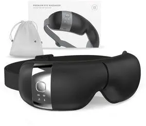 Eye Massager with Heat, Vibration, and Music Helps Relieve Strain, Dark Circles, Dryness, and for Migraine Relief Relaxation and Better Sleep Gifts for Women/Men (Black)
