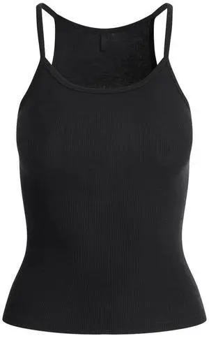 Skims Cotton Rib Scoop Long Tank Top, Soot, Small