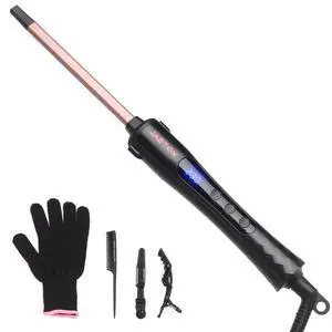 Small Curling Iron 3/8 Inch, 9mm Thin Hair Curling Wand for Short and Long Hair, Professional Ceramic Hair Curler Wand, Include Heat Resistant Glove