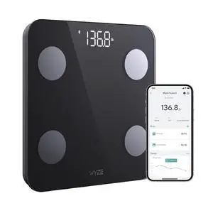 Wyze Scale S, Scale for Body Weight, Digital Bathroom Scale for Body Fat, BMI, Muscle, Heart Rate, Body Composition Analyzer with App, Batteries Included, Bluetooth, 400 lb, Black