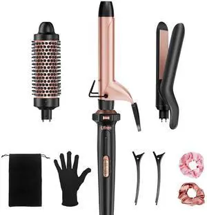 3 in 1 Curling Iron, Curling Wand Set with Thermal Brush Flat Iron Hair Straightener, Dual Voltage Wand Curler, Instant Heat Up Hair Curler, Include Protective Glove 2 Clips, Gifts for Women