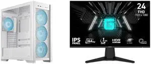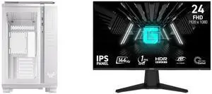 ASUS TUF Gaming GT302 ARGB White Edition ATX Mid-Tower Case Four 140 x 28 mm ARGB fans for high airflow and static pressure, interchangeable side panel, hidden-connector motherboard support MSI 24" (23.8" viewable) Full HD 144Hz IPS with Ad