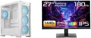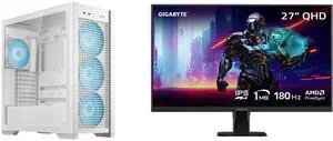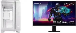 ASUS TUF Gaming GT302 ARGB White Edition ATX Mid-Tower Case Four 140 x 28 mm ARGB fans for high airflow and static pressure, interchangeable side panel, hidden-connector motherboard support GIGABYTE 27" QHD 2K 1440P 180hz IPS with AMD FreeS