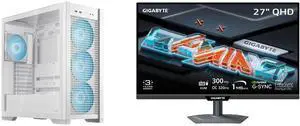 ASUS TUF Gaming GT302 ARGB White Edition ATX Mid-Tower Case Four 140 x 28 mm ARGB fans for high airflow and static pressure, interchangeable side panel, hidden-connector motherboard support GIGABYTE 27" QHD 2K 1440P 300Hz/OC 320Hz IPS with
