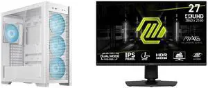 ASUS TUF Gaming GT302 ARGB White Edition ATX Mid-Tower Case Four 140 x 28 mm ARGB fans for high airflow and static pressure, interchangeable side panel, hidden-connector motherboard support MSI 27" WQHD 2K 1440P 240Hz with Adaptive Sync 0.0