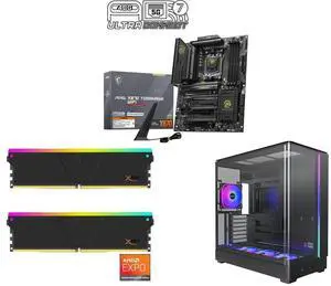 ASRock X870E NOVA WIFI AM5 ATX Motherboard V-COLOR Manta XSky DDR5 32GB (2x16GB) 6400MHz CL32 1.4V SK Hynix IC RGB Gaming Desktop Upgrade Memory Module Black, for AMD EXPO TMXSAL1664832KWK MONTECH KING 45 PRO ATX PC Case, Curved Panoramic G
