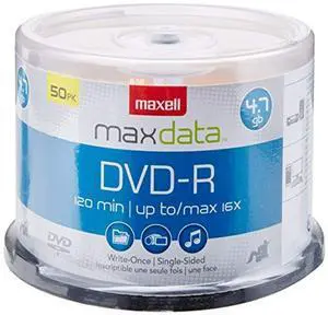 Maxell 638011 Superior Archival Life Metal Azo Dye Construction Write Once Format DVD-R 4.7 Gb Spindle 50 Disc Pack