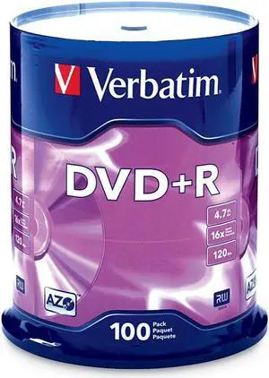 DVD+R Blank Discs AZO Dye 4.7GB 16X Recordable Disc - 100 Discs Spindle Silver Frustration Free Packaging