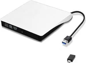 USB3.0 USB-C Super Multi Ultra Slim Portable DVD Rewriter External Drive Support for PC and Mac, White (XD001)