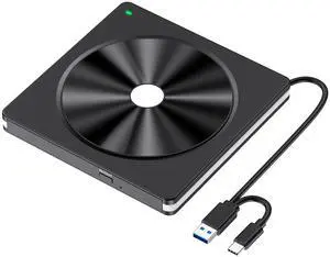 External CD/DVD Drive for Laptop & PC, DVD/CD Burner, Plug & Play, USB 3.0 & Type-C High Speed CD/DVD Reader & Writer, Portable Dvd Player for Laptop Mac-Book, Windows 11/10/8/7, Linux, MacOS