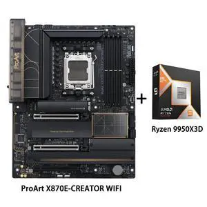 ASUS ProArt X870E-CREATOR WIFI Motherboard & AMD Ryzen 9 9900X3D CPU Combo, AM5 ATX , PCIe 5.0 x16 slots with full support for next-gen GPUs, DDR5, dual USB4, 10 Gb & 2.5 Gb LAN, WiFi 7, four M.2 slot
