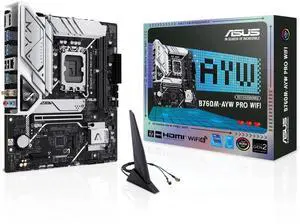 ASUS B760M-AYW WIFI, Intel® B760 LGA 1700 mATX motherboard, PCIe 4.0, PCIe 4.0 M.2 slots, DDR5, Realtek 2.5Gb Ethernet, WiFi 6, HDMI, SATA 6 Gbps, front USB 3.2 Gen 1, Aura Sync