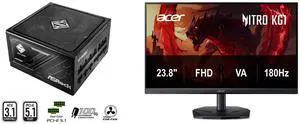 ASRock SL-1200G Gold 1200W Full Modular Power Supply Acer Nitro 24" (23.8" viewable) Full HD 1080P 180hz with AMD FreeSync Technology 0.5ms, HDR10, compatible with VESA mounting 100mm x 100mm Gaming Computer Monitor KG241Y P3bip