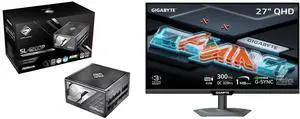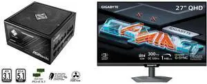ASRock SL-1000P 1000W Power Supply GIGABYTE 27" QHD 2K 1440P 300Hz/OC 320Hz IPS with AMD FreeSync Premium Pro & G-SYNC Compatible 1ms USB-C KVM Gaming Computer Monitor with Height Adjustable, Pivot, Swivel & Tilt Stand M27Q3