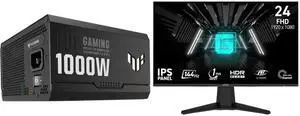 ASUS TUF Gaming 1000W Gold (1000 Watt, ATX 3.0 Compatible Fully Modular Power Supply, 80+ Gold Certified, Military-grade Components, Dual Ball Bearing, Axial-tech Fan, PCB Coating) MSI 24" (23.8" viewable) Full HD 144Hz IPS with Adaptive-Sy