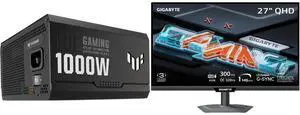 ASUS TUF Gaming 1000W Gold (1000 Watt, ATX 3.0 Compatible Fully Modular Power Supply, 80+ Gold Certified, Military-grade Components, Dual Ball Bearing, Axial-tech Fan, PCB Coating) GIGABYTE 27" QHD 2K 1440P 300Hz/OC 320Hz IPS with AMD FreeS