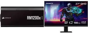 CORSAIR RMx Shift Series RM1200x Shift Fully Modular 80PLUS Gold ATX Power Supply GIGABYTE 27" UHD 4K 240Hz with AMD FreeSync Premium Pro &, G-SYNC Compatible HDR400 USB-C KVM OLED Gaming Computer Monitor with Height adjustable, pivot, tilt