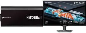 ASRock SL-1200P 1200W Power Supply GIGABYTE 27" QHD 2K 1440P 300Hz/OC 320Hz IPS with AMD FreeSync Premium Pro & G-SYNC Compatible 1ms USB-C KVM Gaming Computer Monitor with Height Adjustable, Pivot, Swivel & Tilt Stand M27Q3
