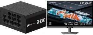 Corsair SF Series (2024) SF1000, 80 PLUS Platinum, Fully Modular SFX Power Supply, CP-9020257-NA GIGABYTE 27" QHD 2K 1440P 300Hz/OC 320Hz IPS with AMD FreeSync Premium Pro & G-SYNC Compatible 1ms USB-C KVM Gaming Computer Monitor with Heigh