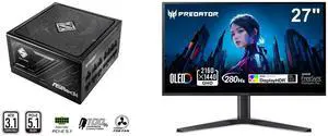 ASRock SL-1000G 1000W Power Supply Acer Predator 27" WQHD 2K 1440P 280hz with AMD FreeSync Premium Pro, 0.03ms OLED Gaming Computer Monitor X27U Z1bmiiprx
