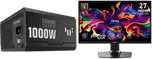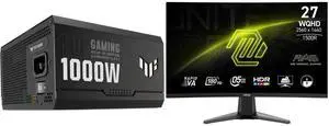 ASUS TUF Gaming 1000W Gold (1000 Watt, ATX 3.0 Compatible Fully Modular Power Supply, 80+ Gold Certified, Military-grade Components, Dual Ball Bearing, Axial-tech Fan, PCB Coating) MSI 27" QHD 2K 1440P 180Hz with AMD FreeSync Sync 0.5ms HDR