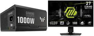 ASUS TUF Gaming 1000W Gold (1000 Watt, ATX 3.0 Compatible Fully Modular Power Supply, 80+ Gold Certified, Military-grade Components, Dual Ball Bearing, Axial-tech Fan, PCB Coating) MSI 27" Dual Mode UHD 4K 144Hz Full HD 288Hz IPS with Adapt