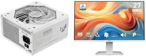 ASUS TUF Gaming 1000W 80+ Gold White Edition (1000 Watt, Fully Modular Power Supply, 80+ Gold Certified, Military-grade Components, Dual Ball Bearing, Axial-tech Fan, PCB Coating) MSI 27" Full HD 144Hz IPS white LCD Computer Monitor with Bu